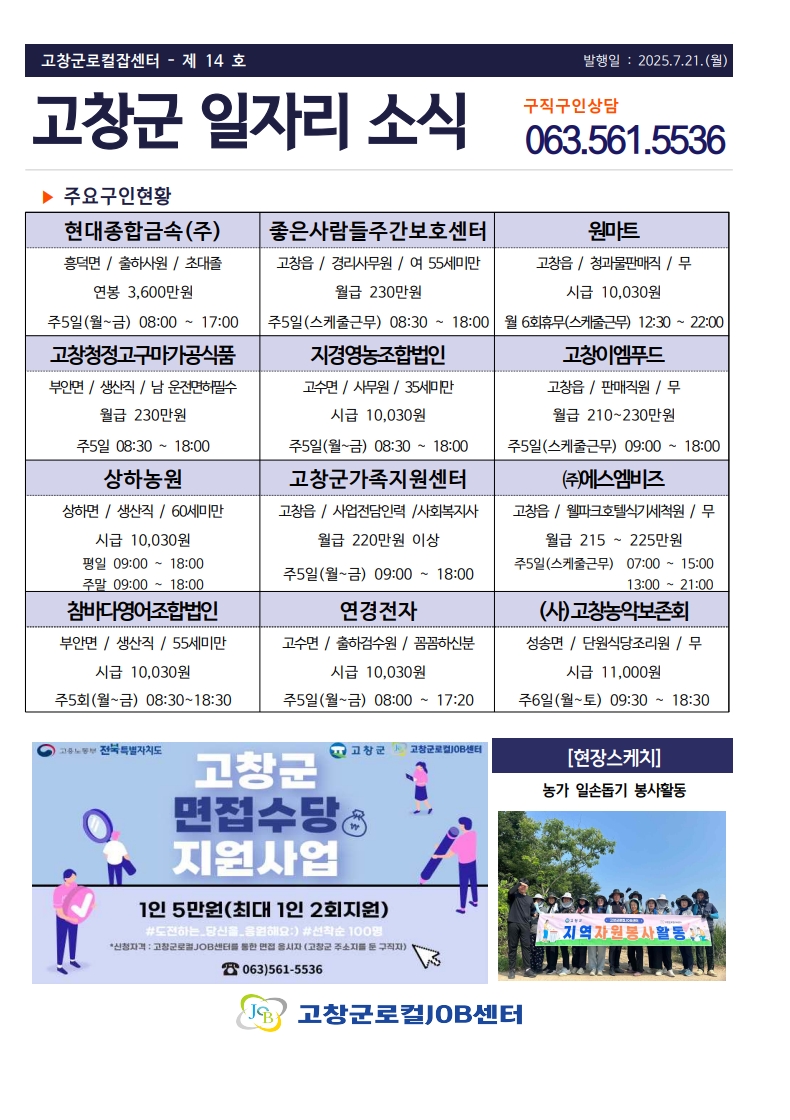 고창군 일자리 소식지 제14호
