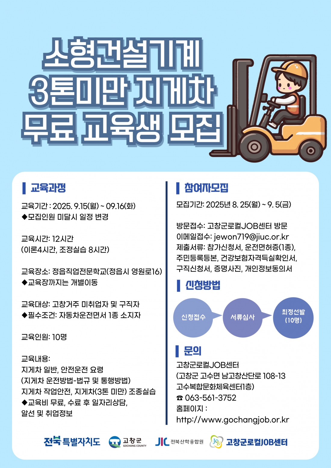 2025년 직무역량강화교육 구직자(3톤 미만 지게차) 교육생 모집공고